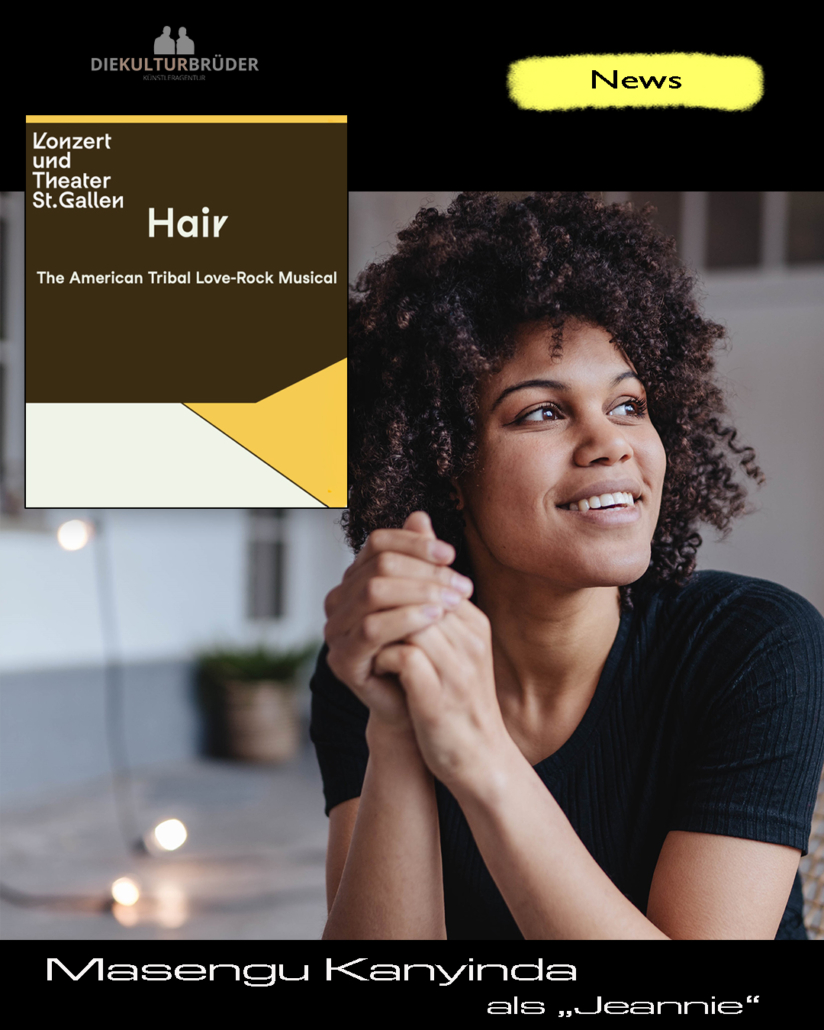 Wir freuen uns sehr, bekannt geben zu dürfen, dass unsere wunderbare Masengu in der kommenden Produktion des Musicals HAIR am Theater St. Gallen als „Jeannie“ auf der Bühne stehen wird.