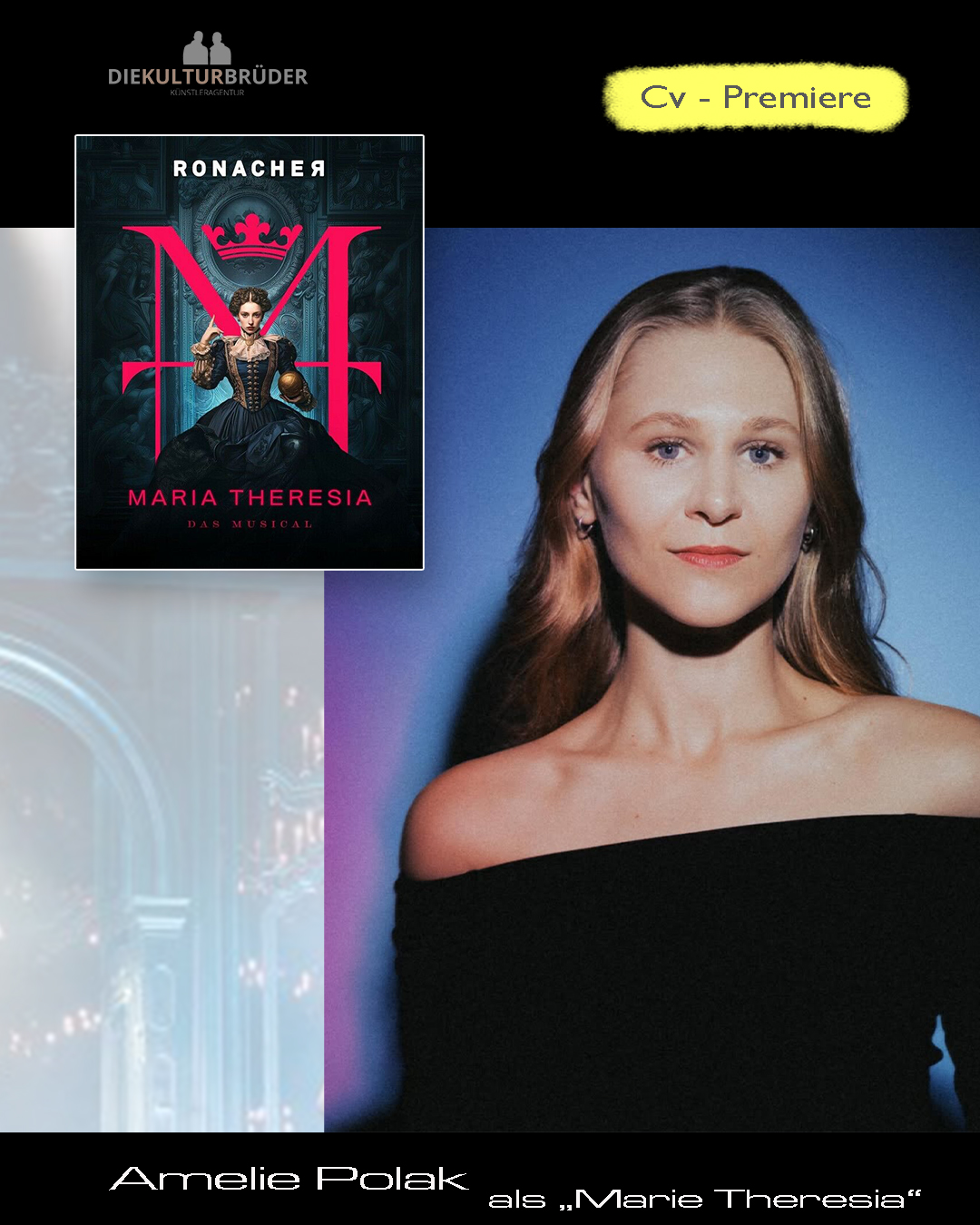 Liebe Amelie, wir wünschen dir eine wunderbare Premiere in dieser tollen Rolle und freuen uns auf noch viele wunderbare Vorstellungen mit dir als „MARIA THERESIA“!